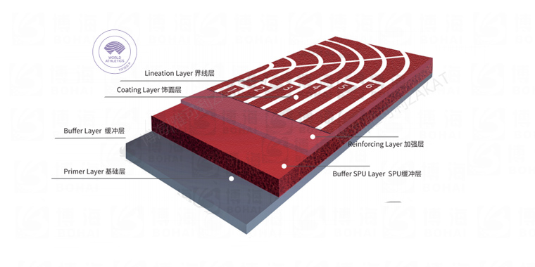 由微發(fā)泡閉孔技術(shù)的聚氨酯底膠鋪設(shè)而成,為世界田徑(國際田聯(lián))認(rèn)可推薦為各大型國際賽事運動員競賽和訓(xùn)練專用場地類型,耐高低溫、沖擊吸收。