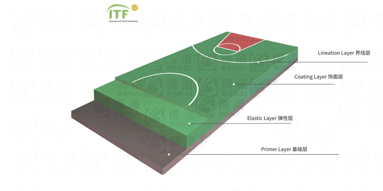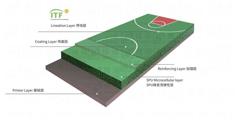 由PU彈性層BH-CS01、加強層和水性面漆耐磨層BH-WB01刮涂組成,該結(jié)構(gòu)具有優(yōu)越物理性能,滿足人體工學(xué)的彈力科技,色彩美觀,施工方便、耐候性能強,防滑性好、容易保養(yǎng)的有點。