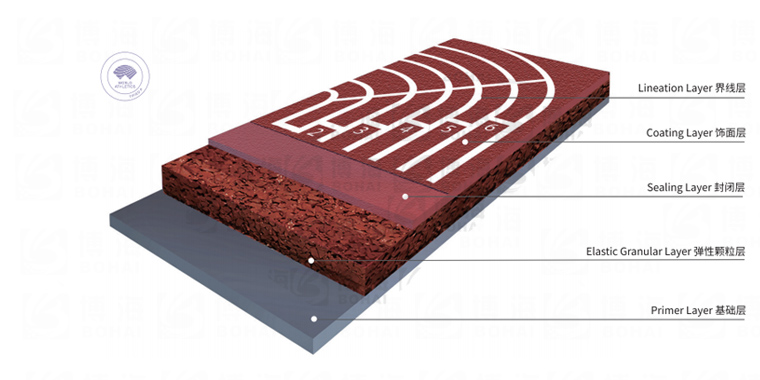 采用EDPM橡膠顆粒作為底層,聚氨酯底膠封底,聚氨酯面漆和膠漿作為面層鋪設(shè)而成,具有彈性好、色澤鮮艷、強度高、耐磨、防滑、耐低溫、防震隔音經(jīng)久耐用等特點。由于其采用獨特的聚氨酯PU封底,在高寒地區(qū)雨雪延伸不進塑膠跑道彈性層,是我國高寒地區(qū)首選體育運動場地田徑跑道產(chǎn)品。