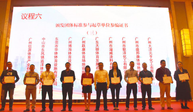 2020年11月24日,廣州市質(zhì)量強市工作領(lǐng)導(dǎo)小組辦公室牽頭舉行的運動場地合成材料面層產(chǎn)品質(zhì)量提升工作成果暨團體標(biāo)準(zhǔn)發(fā)布會在番禺美麗豪酒店召開。廣東省體育設(shè)施制造商協(xié)會承辦,廣州博海體育設(shè)施有限公司等企業(yè)代表出席了大會。